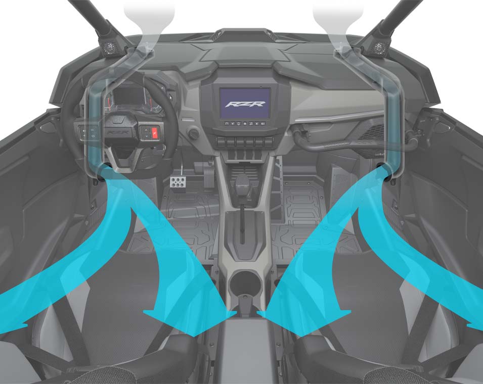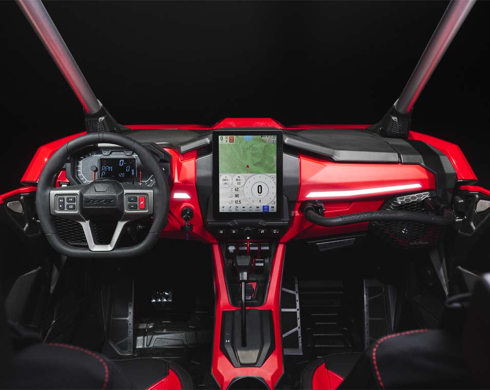 La victoria empieza desde dentro, y el RZR Pro R no es la excepción. Su interior ha sido diseñado meticulosamente para proporcionar mayor comodidad y practicidad, dándote el poder de llegar más lejos, manejar con más intensidad y terminar en primer lugar.