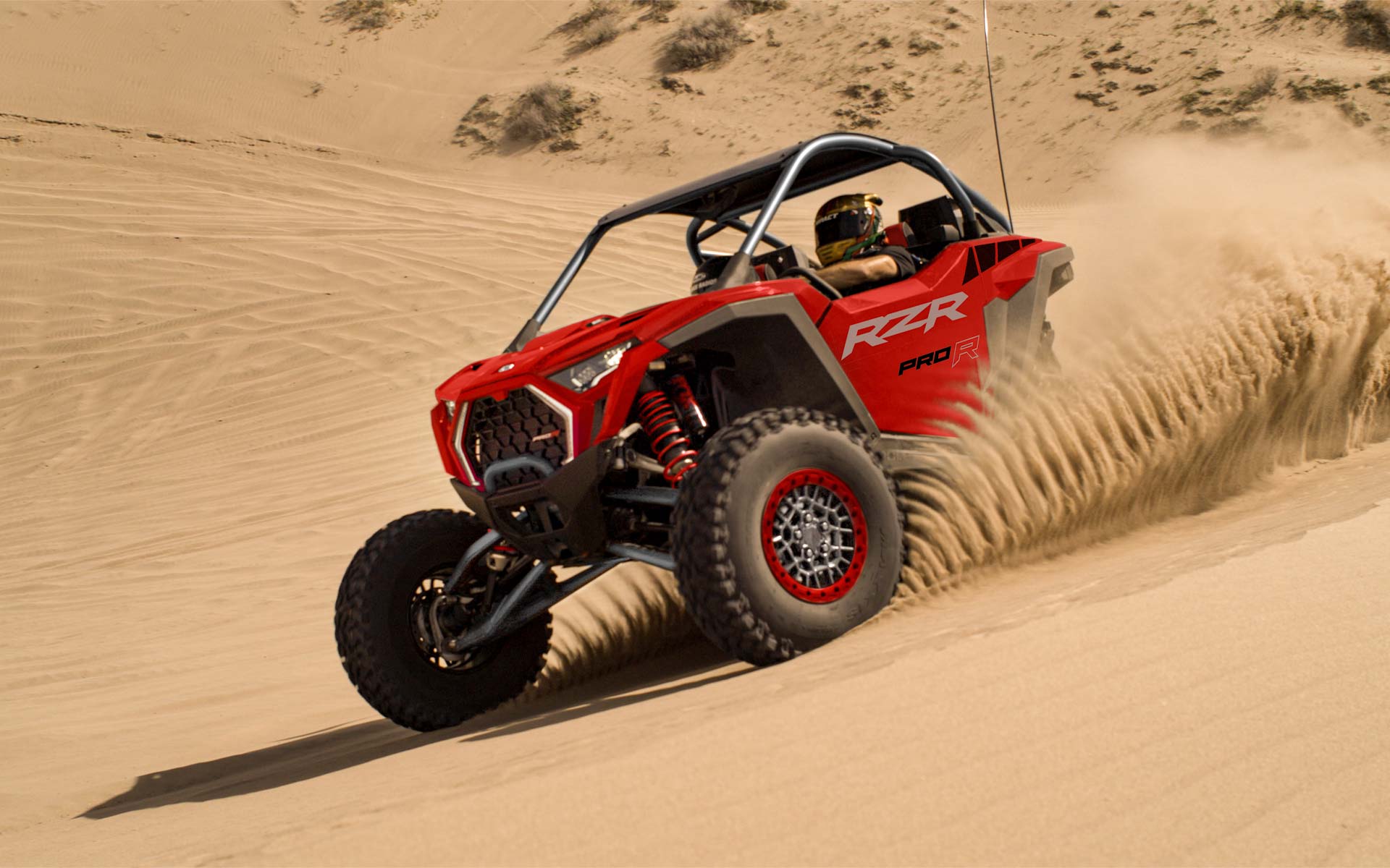 Supera a todos con una bestia todo terreno diseñada para ser el mejor. RZR Pro R entrega un desempeño asombroso para desafiar desiertos, conquistar dunas y batir récords todo terreno. Nunca vuelvas a quedar segundo. Con RZR Pro R, siempre ganas